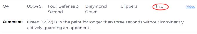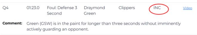 2. 比赛还剩1分23秒时,格林在未积极防守的情况下在己方禁区停留超过三秒,此次防守三秒违例漏判,快船再次吃亏。
