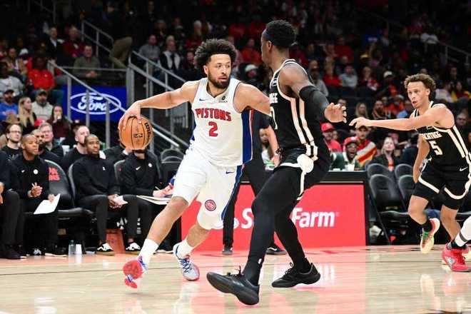活塞过去10场成为本赛季首支达成10连胜的球队稳居东部第一,老鹰过去5场在缺少特雷-杨情况下收获5连胜。本场老鹰缺少特雷-杨、波尔津吉斯与里萨谢等,活塞缺少艾维、哈里斯与萨瑟。首节前3分钟活塞内外开花取得13-5领先优势,老鹰一波7-0攻势追到差1分,活塞回敬一波8-0攻势扩大9分优势。老鹰连得7分迫近比分,老鹰之后还追到27-27,活塞继续打出一波8-3攻势拉开比分,首节比赛结束活塞35-30领先老鹰5分。