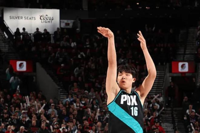 即便阿夫迪亚及时站出来为开拓者稳住局面,连进两球,但这也只是杯水车薪,在第四节的时候杨翰森在节末上场,直接摘下首个篮板。