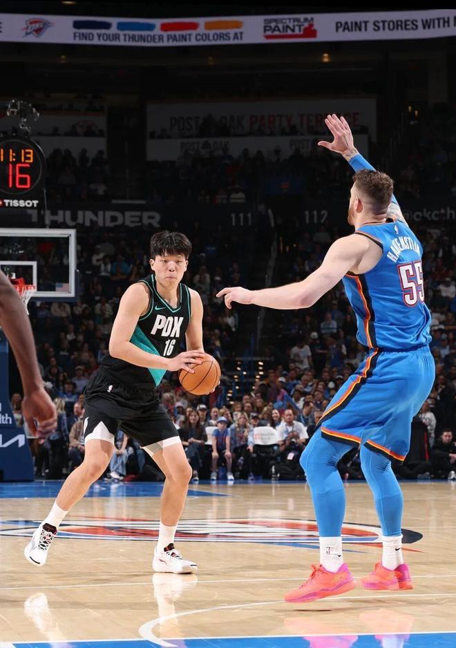 然而雷霆队的防守此时坚如磐石,开拓者的进攻一次次被瓦解,而这个时候杨翰森作为替补上场。