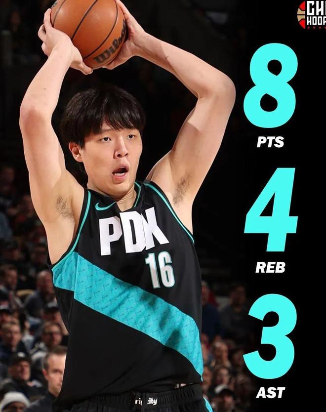 比赛出场的时间相较于其他球员,要少了很多,不过在这场与开拓者的比赛中,杨翰森抓住了有限的上场时间,展现出了自己的实力。