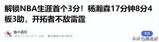 鲁中晨报(解锁NBA生涯首个3分!杨瀚森17分钟8分4板3助,开拓者不敌雷霆2025.11.24)