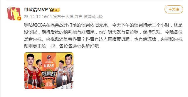 不过,局势并非已完全尘埃落定。媒体人付政浩透露,咪咕所发布的公开信是在前一晚拟定的,而在新赛季揭幕战开赛前,咪咕与CBA仍在进行最后一轮压哨谈判。双方都希望能在最后时刻弥合分歧,实现续约。