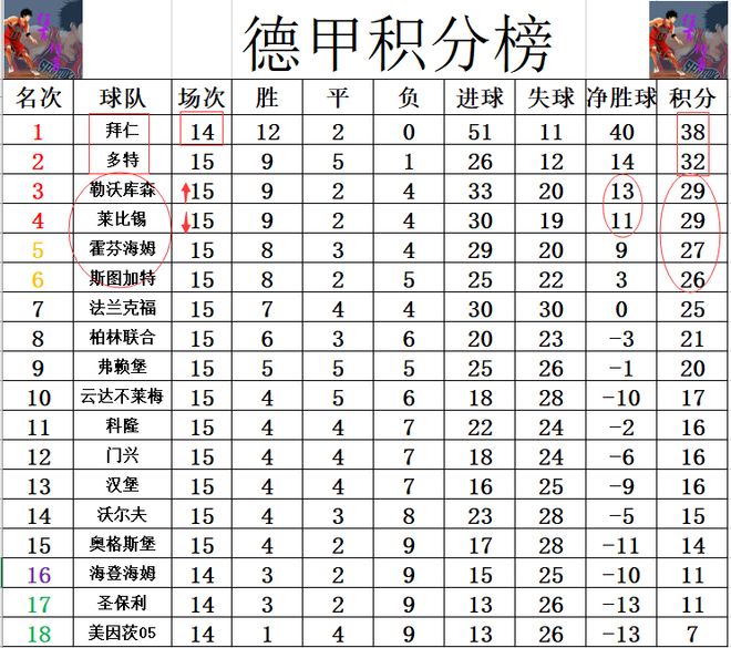 积分榜方面,拜仁少赛一场稳居榜首,多特紧随其后领先莱比锡1分,勒沃库森凭借净胜球优势升至第三。莱比锡红牛本轮失利使其被挤出前3,争夺前四的局势愈发紧张。