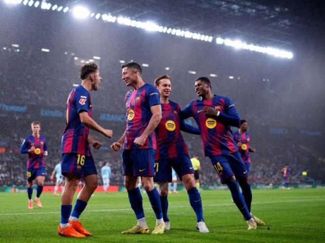 第8分钟,费尔明远射造成对手的手球,裁判给了点球,莱万主罚,稳稳命中。巴萨1-0领先。第11分钟,塞尔塔扳平了比分,1-1。第37分钟,拉什福德送出非常精准的传中,莱万抢点破门,巴萨2-1再次领先。